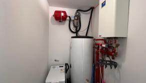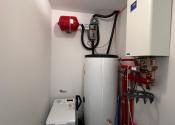 Elektrický kotol s podlahovým kúrením a elektrickým zásobníkom vody prepojený so solárnym systémom.