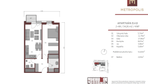 - rozloha bytu: 54,26 m2 ( z toho byt 51,63 m2, balkón 2,63 m2, kobka 2,71 m2)