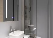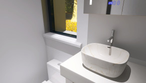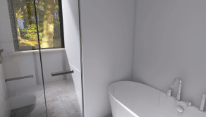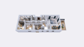 Vstupná chodba, 4 samostatné izby z toho manželská spálňa má samostatnú kúpeľňu a šatník, druhá kúpeľňa, technická miestnosť, kuchyňa s obývačkou, špajza.
