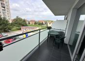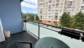 Dispozícia: pôdorys bytu priložený pri fotografiách, predsieň, kúpeľňa s WC, obývacia izba prepojená s kuchyňou, samostatná spálňa s francúzskymi balkónovými dverami, priestranná loggia.