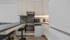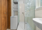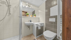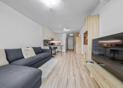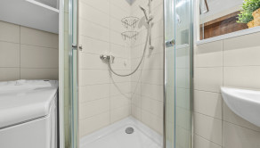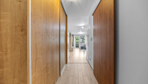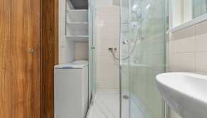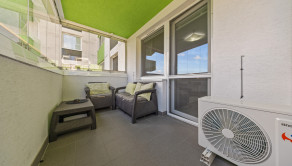 Klimatizácia, žalúzie, plastové okná, vykurovanie radiátormi s výmeníkovou stanicou, kúpeľňa so sprchou a WC, kuchynská linka a umývačka riadu, vstavaná skriňa v chodbe.
