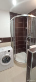 pod umývadlo, v obývacej izbe rozťahovací gauč, 1ks kreslo, stôl a obývacia stena.