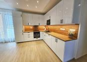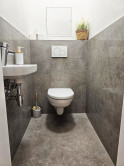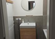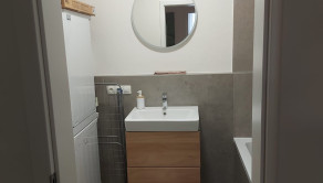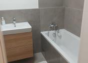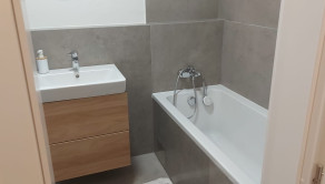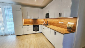 - dlažba v kúpeľni, samostatnom WC, laminátové podlahy v obývačke, kuchyni a chodbe