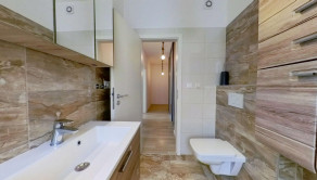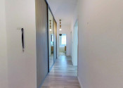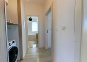 laminátové podlahy, keramická dlažba, vstupná chodba so vstavanou skriňou, kuchynská linka na mieru so zabudovanými spotrebičmi,
