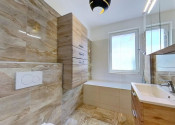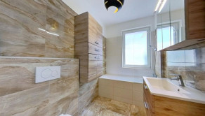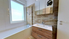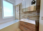 - podlahové kúrenie, terasa, vlastné vonkajšie parkovacie státie, záhrada 198 m2 a domčekom na náradie