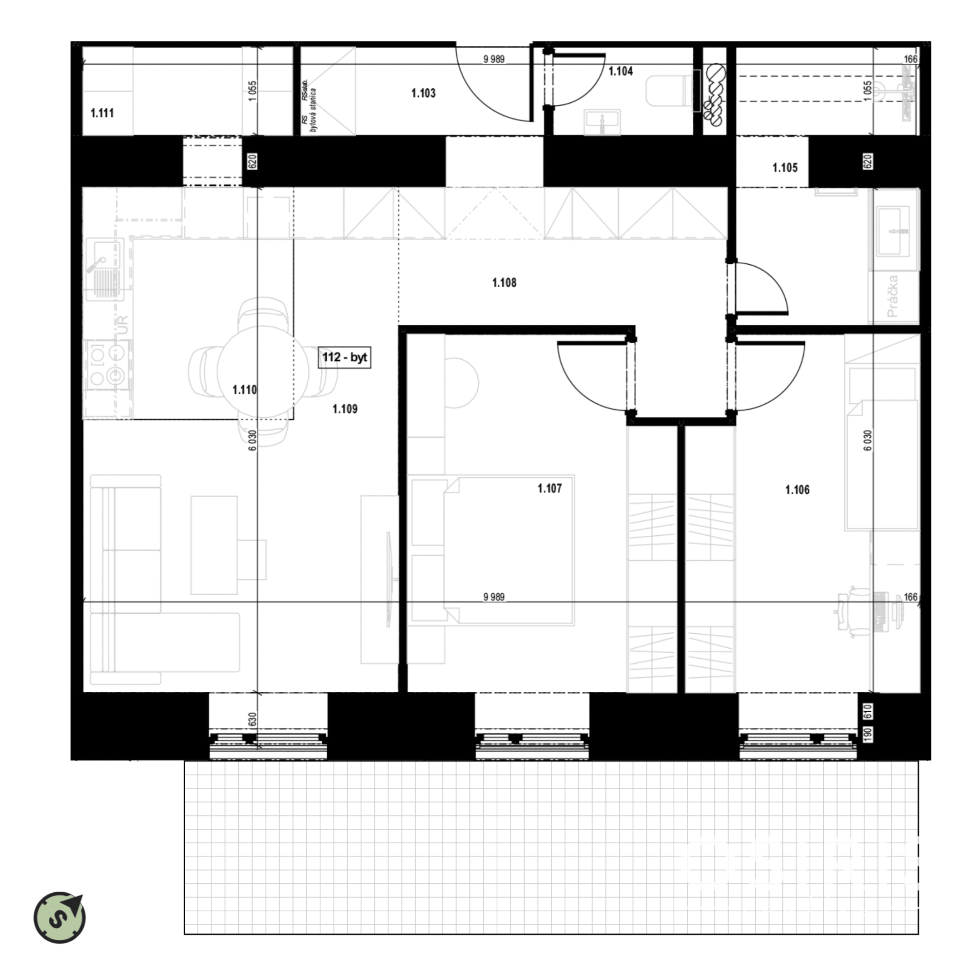Byt o rozlohe 99,74 m2 sa nachádza 1.NP s výťahom a prislúcha mu terasa o výmere 25,5 m2. Byt sa predáva v stave čiastočne zariadený, kde už v cene je zahrnutá nadštandartná kuchynská linka a kúpeľňa so sprchovacím kútom, obklady a dlažby už boli zrealizované v roku 2025. Boli tiež inštalované interiérové dvere, zárubne, podlahy, sanita, obklady, dlažby, vonkajšie elektrické hliníkové žalúzie. Teplovodné podlahové kúrenie zabezpečené vlastnou kotolňou bytového domu.