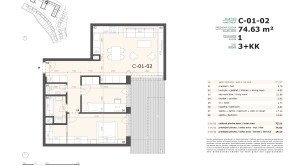 Úžitková plocha: 74,63 m² + 19,17 m² balkón