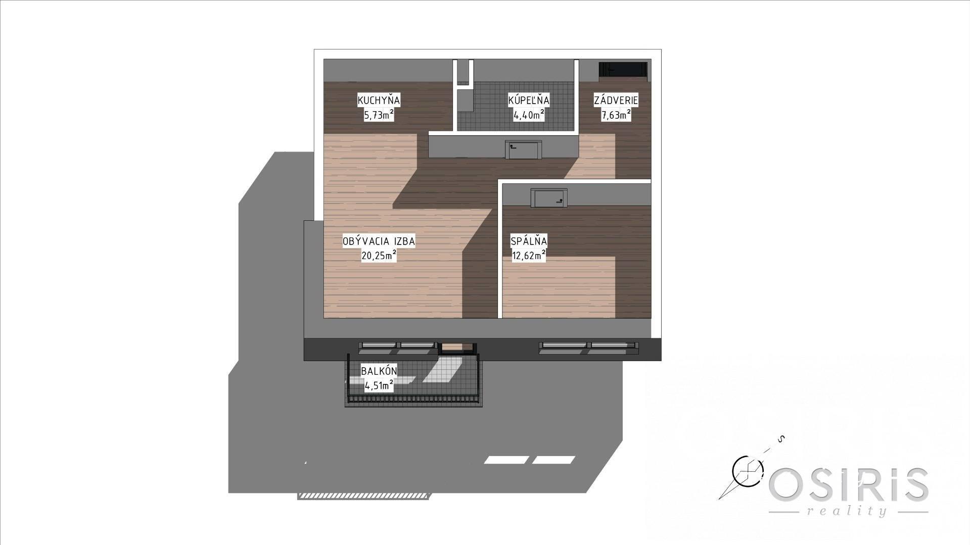- plocha: 56.53 m2 byt + 1.44 m2 pivnica + 4.51 m2 balkón