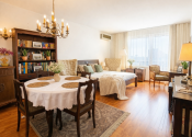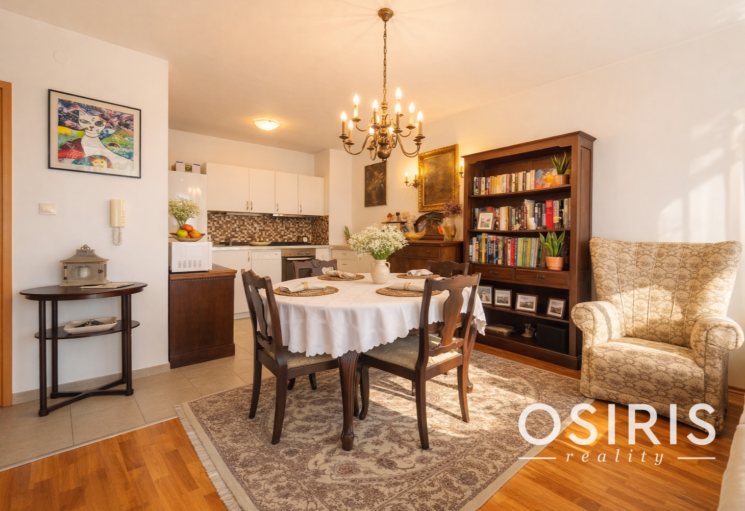Byt pôsobí elegantne, útulne a veľmi osobito. Vkusne zladené zariadenie a starožitné prvky dodávajú priestoru eleganciu, teplo domova a jedinečný charakter, vytvárajú príjemnú atmosféru a odlišujú nehnuteľnosť od bežnej ponuky na trhu.